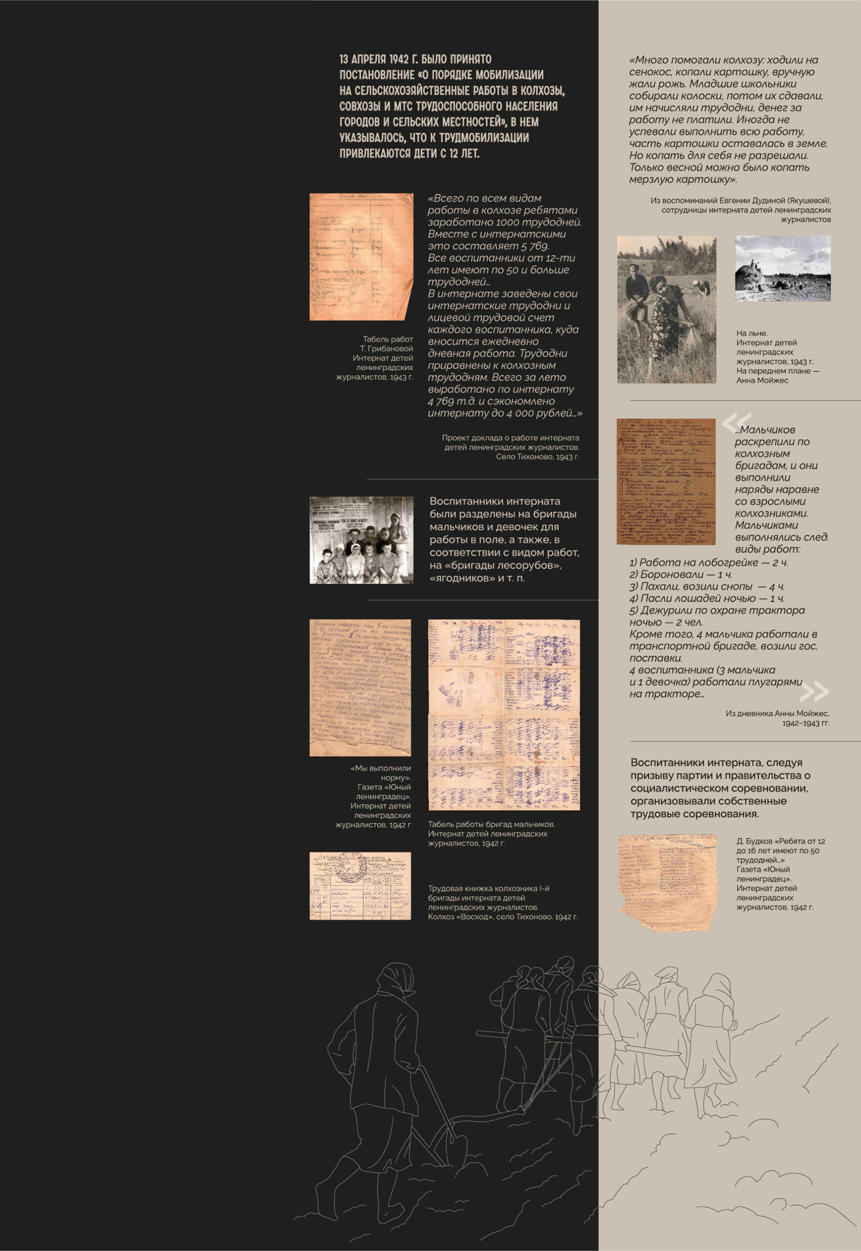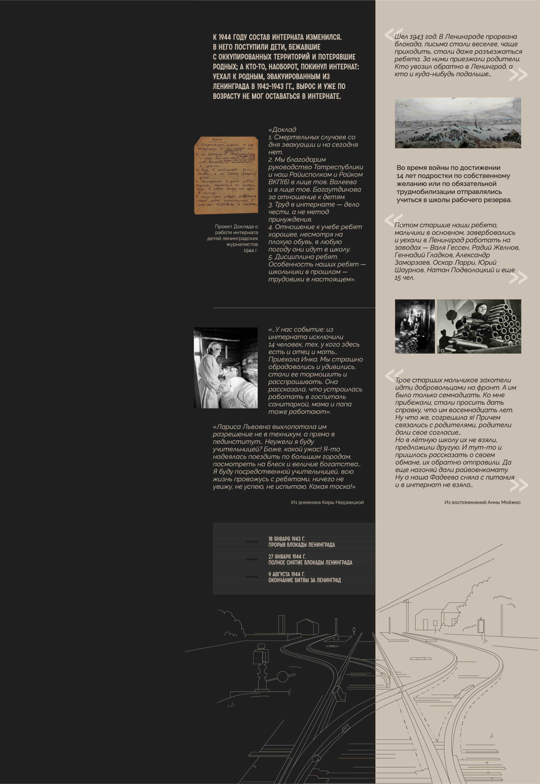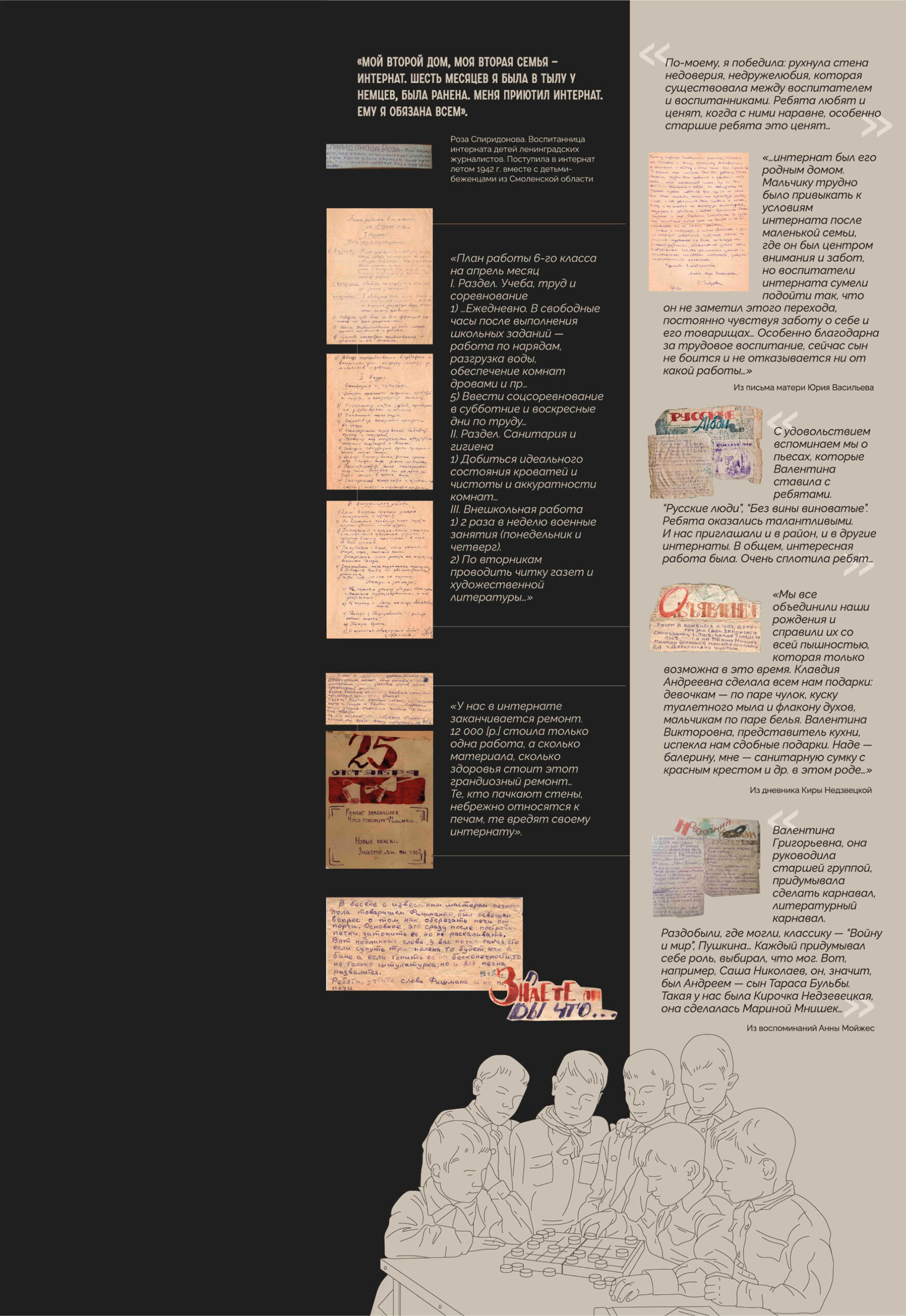 Анна Лазаревна Мойжес (1910-2004), известная ленинградская журналистка, в 1990-х годах записала воспоминания о жизни в эвакуации, где она находилась в числе сотрудников интерната детей ленинградских журналистов. Выставка подготовлена в рамках инициативы «Гуманитарный жест» совместно с партнёрами — АНО «Культура памяти» и ГБУК ЛО «Музейное агентство».