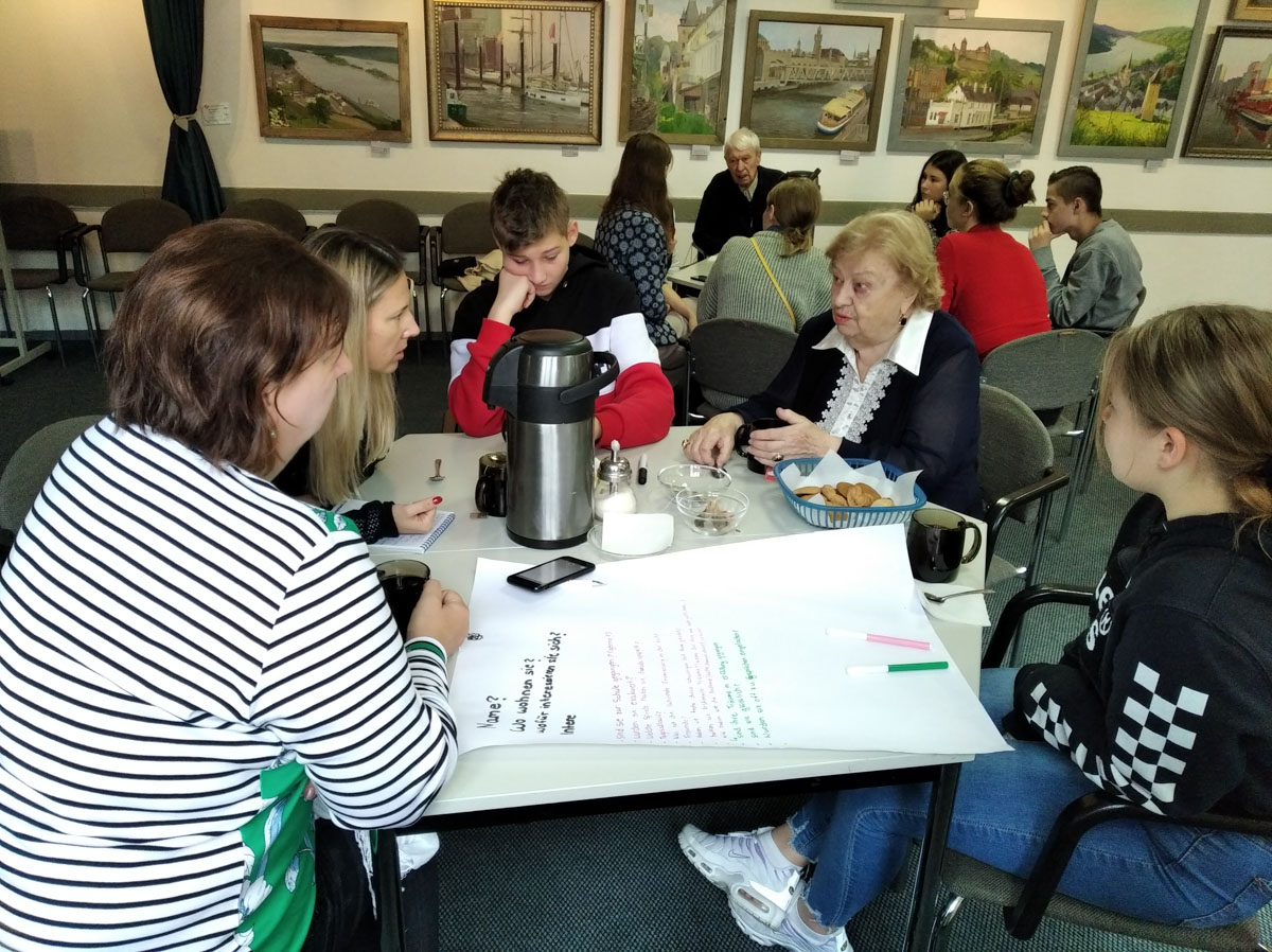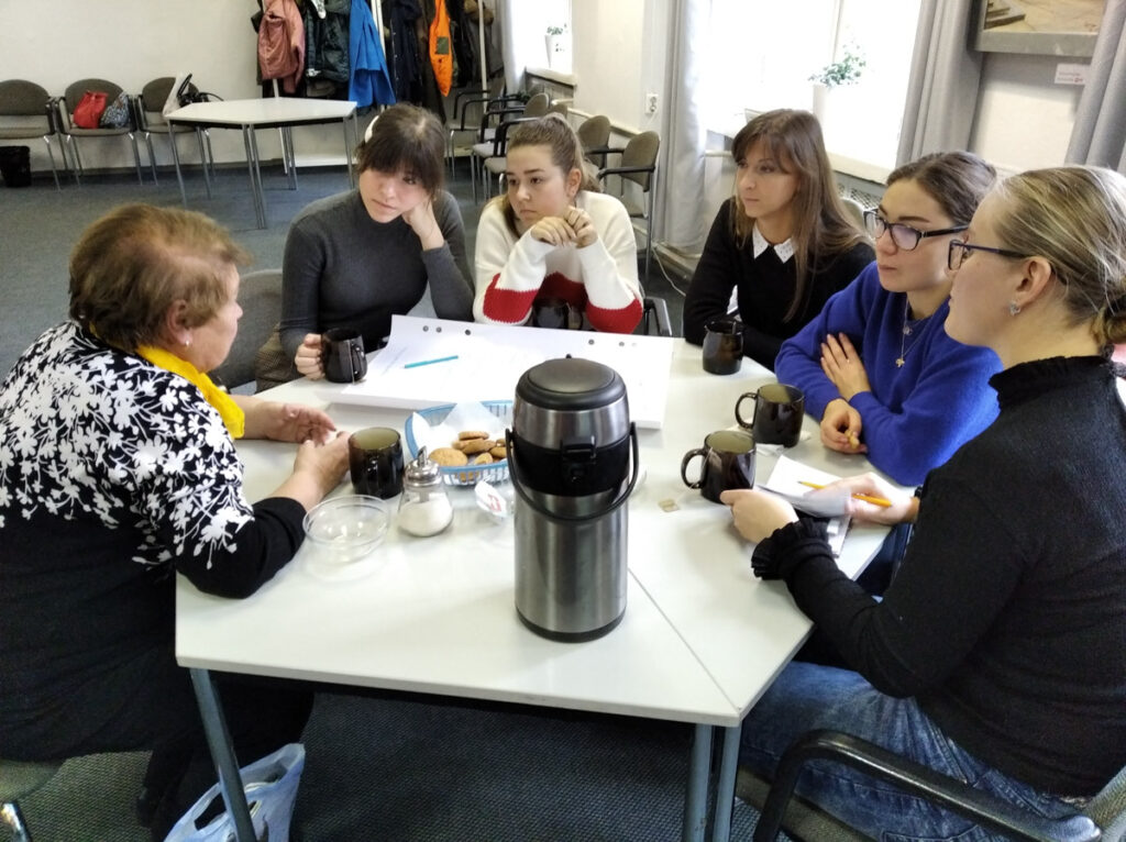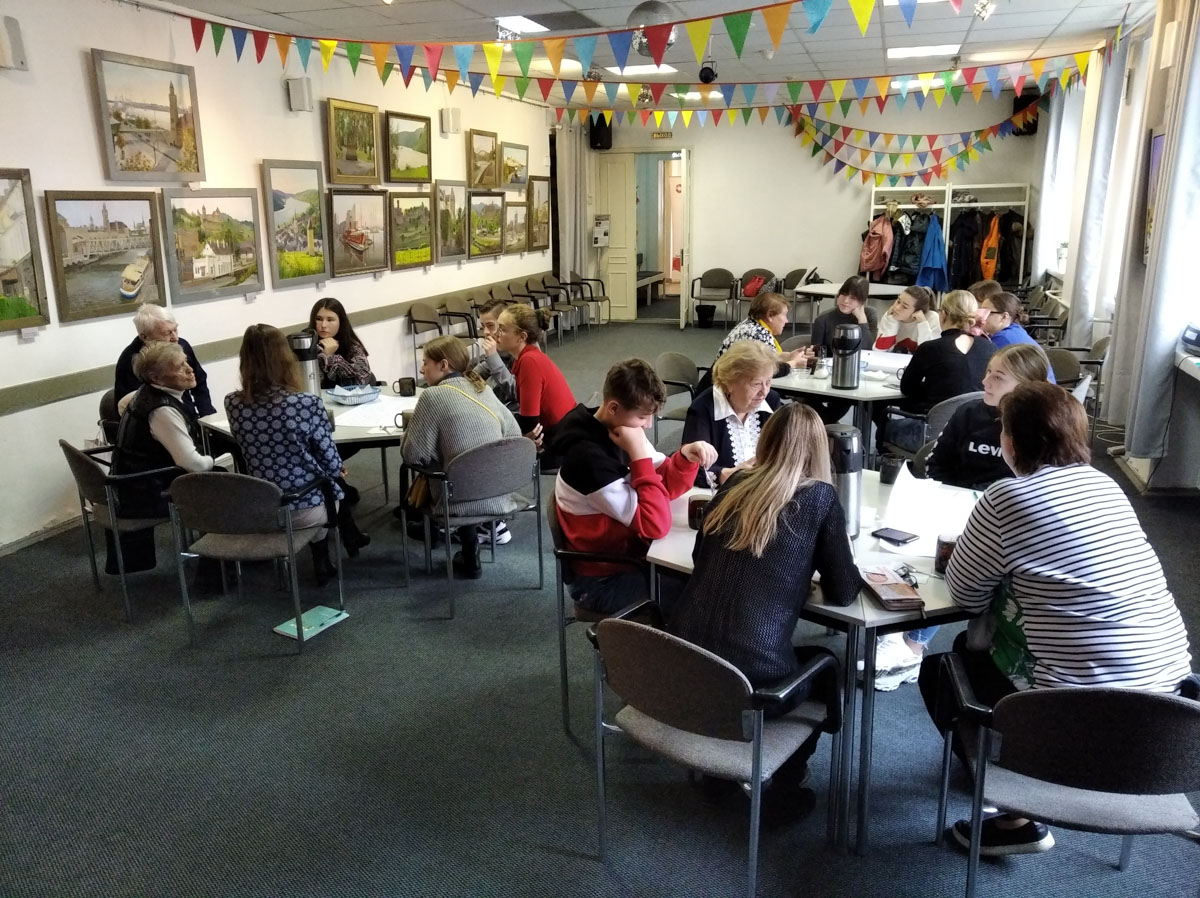 На общение со живыми очевидцами блокады в программе было выделено два часа, которые незаметно пролетели за неспешным разговором и чаем с пирогами. Переводчики, прошедшие несколько подготовительных семинаров, помогали в общении и умело направляли беседу, если возникали какие-то трудности.